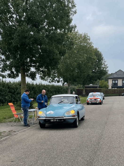 “Een kleine 30 equipes verzamelen zich deze zaterdag [13 september, red.] bij eetcafé La Baraque in Zevenhuizen. Een aantal deelnemers heeft er voor gekozen hier de lunch te gebruiken waarna vanaf 13.01 uur de eerste wedstrijdkaarten zijn uitgedeeld en de motoren worden gestart. Bij het verlaten van de parkeerplaats wacht direct de eerste instinker van uitzetter Fred Hak die daarmee test of de navigatoren meteen bij de les zijn. Wat volgt is een prachtige route via Moordrecht, Waddinxveen naar Bleiswijk en langs de Rotte weer richting Zevenhuizen. Bij tijd en wijle komt de regen met bakken uit de hemel. De navigatoren werden continu uitgedaagd om de juiste route te vinden waarbij rood gekleurde wegen zoveel mogelijk vermeden dienen te worden. Een snelheidscontrole in een 30km-zone verrast een flink deel van de bestuurders en hier worden dan ook in ruime mate strafpunten gescoord.